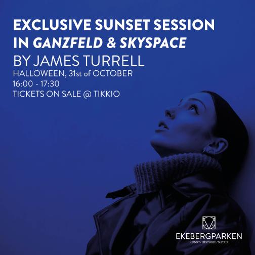 Velkommen til en eksklusiv solnedgangsseanse i James Turrell sin lysinstallasjon «Skyspace - The Color Beneath»! Opplev solnedgangen slik du aldri før har gjort. Se og erfar hvordan installasjonen fylles opp med sterke farger som endrer vår opplevelse både av rommet vi sitter i, og himmelen over oss. Dette er en vakker og sanselig opplevelse du sent vil glemme! Kvelden starter med en introduksjon til kunstneren med lett servering i Turrells andre installasjon, «Ganzfeld – Double Vision», og avsluttes med solnedgangsseansen i «Skyspace».
